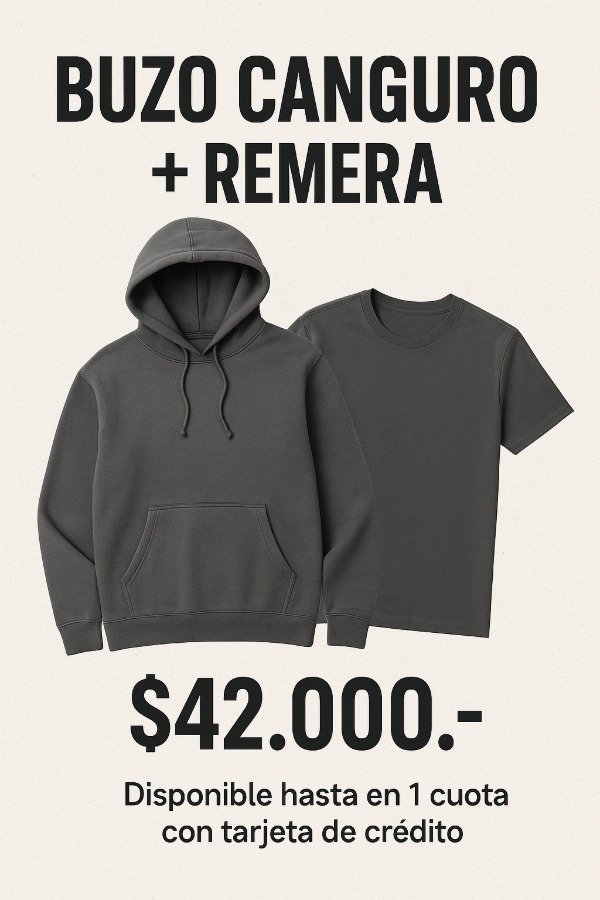 Buzo canguro frisa invisible algodón peinado + remera algodón peinado
